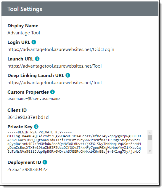 To complete all the steps in the launch flow, the platform needs to know the tool’s login URL, launch URL, client ID, and either the tool’s private key or public key.